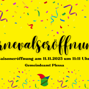 Eröffnung der 70. Karnevalssaison des Plessaer Carnevals-Club e.V. mit der traditionellen Schlüsselübergabe am Gemeindeamt Plessa. Die 70. Karnevalssaison findet unter dem Motto „70 Sünden und noch mehr – der PCC tanzt kreuz und quer“ statt.